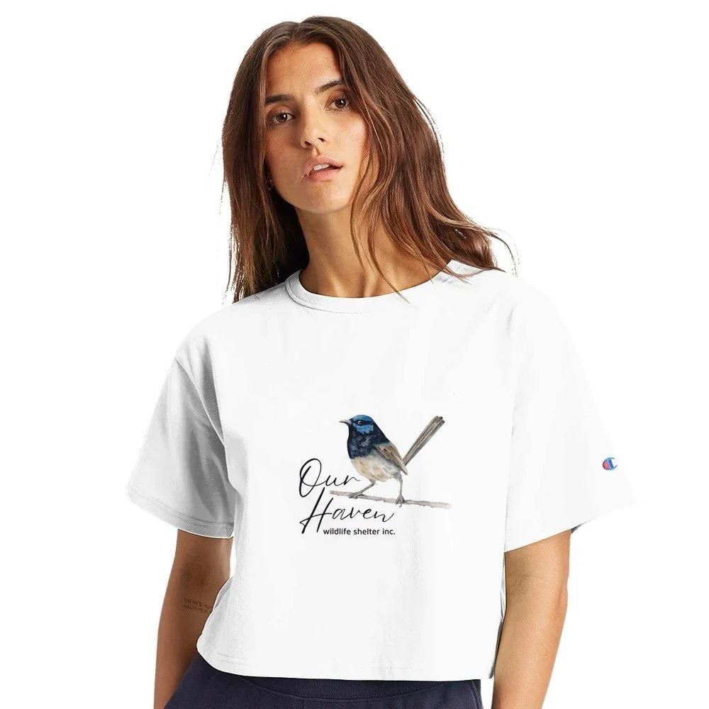 This t-shirt is designed with a comfortable and stylish cropped fit, perfect for active or casual wear.